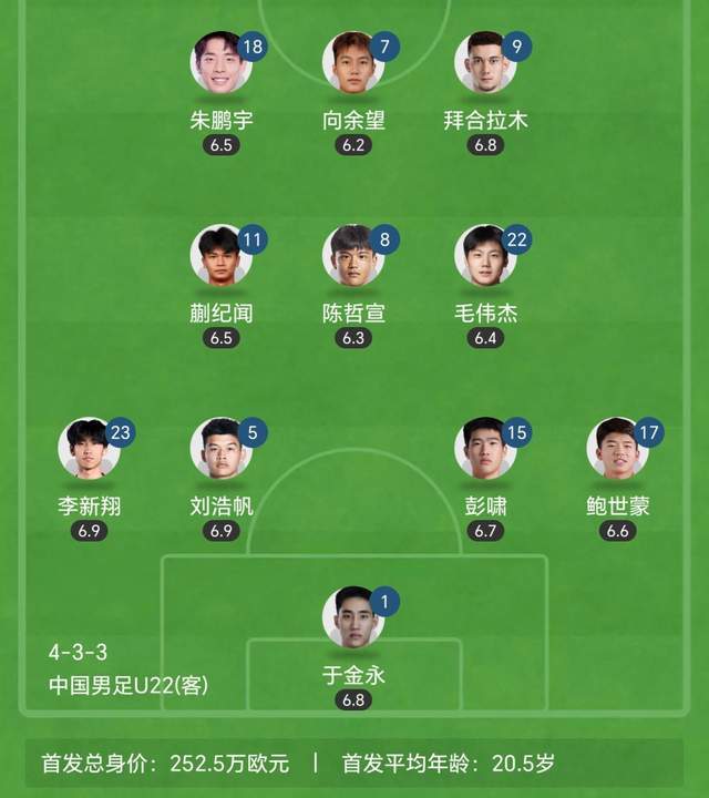主教练安东尼奥排出4-3-3进攻阵型,前场三叉戟分别是朱鹏宇、向余望和拜合拉木。